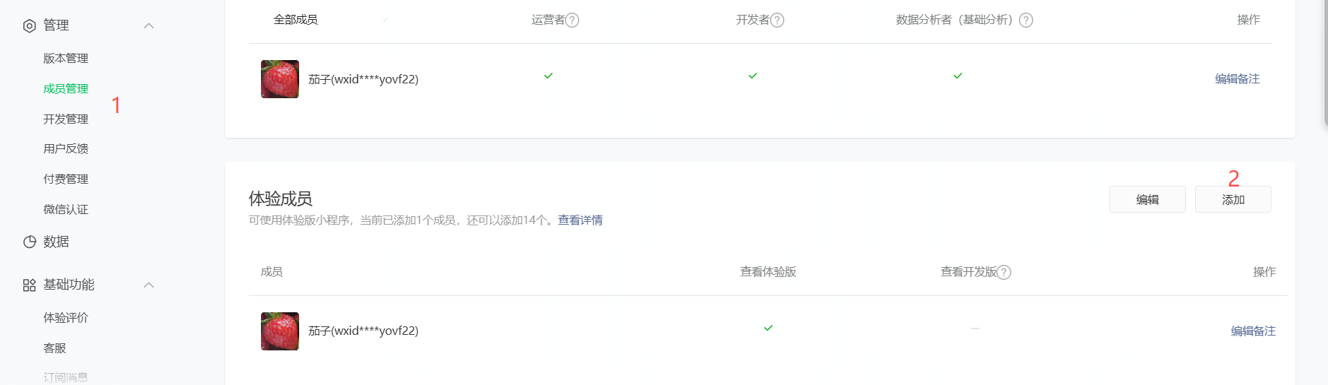 添加体验程序及项目成员需要微信小程序管理员扫码并同意。