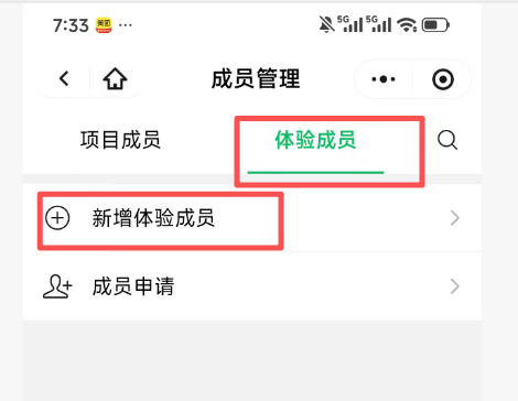 如果你的权限为项目成员在PC端增加“体验成员”时需要管理员进行扫码才可以正常添加,但在手机端微信小程序上不需要管理员扫码,项目成员即可管理体验成员的添加。