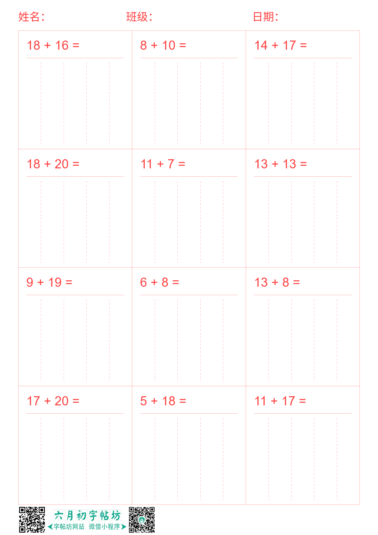 网页版本:搜索网站或点击打开“六月初字帖坊”,选择对应算术题一键生成,在线打印,完全免费!